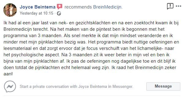 Na twee maanden ben ik nu dankzij BreinMedicijn eindelijk vrij van mijn pijn en ook nog eens voor een betaalbaar bedrag!